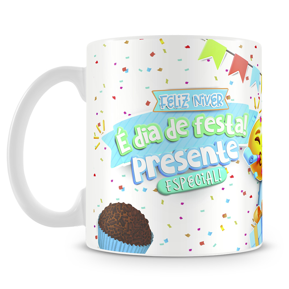 A Caneca “Aniversário é Pique” vai embalada em uma linda caixinha estampada para presente, pronta para surpreender e arrancar sorrisos logo no primeiro olhar.