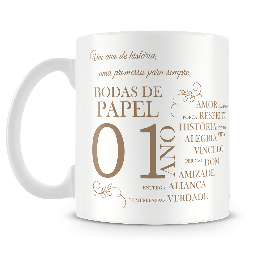 A Caneca Bodas de Papel é o presente perfeito para celebrar 1 ano de casamento com carinho, significado e uma lembrança que será usada todos os dias.