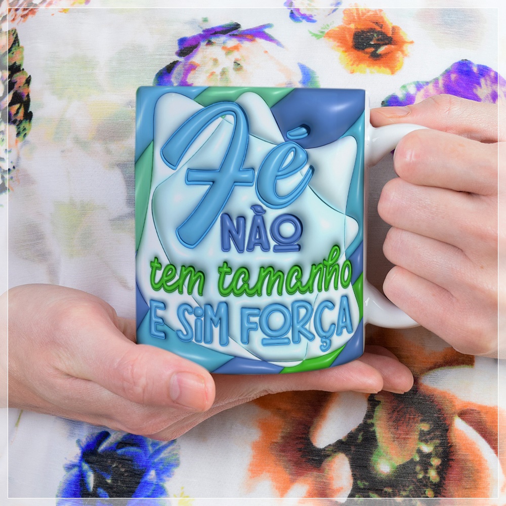 Desperte a resiliência e a inspiração diariamente com a Caneca Estampada "Fé Não Tem Tamanho, e Sim Força".