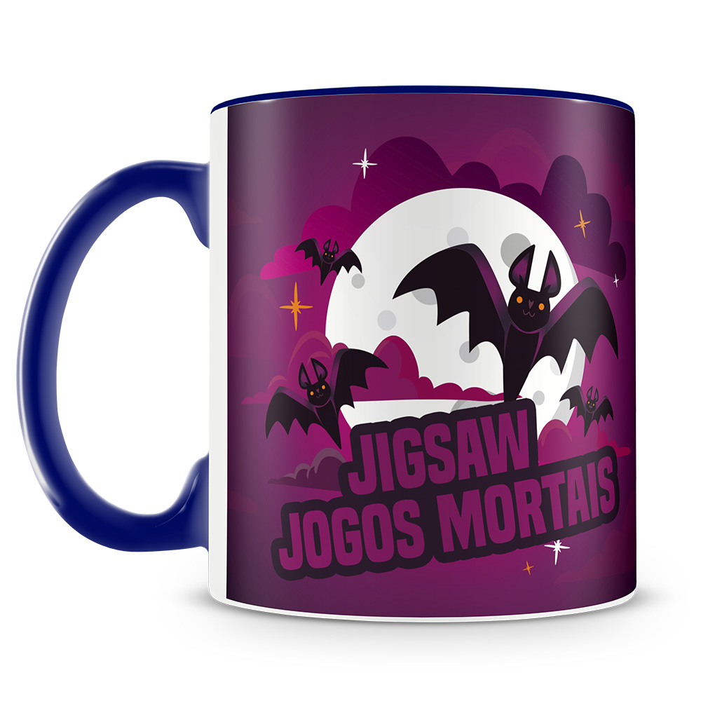 Produzida em cerâmica premium de alta qualidade, essa caneca oferece resistência, brilho intenso e acabamento impecável, ideal para quem é apaixonado pelo universo sombrio e intrigante da franquia Jogos Mortais.