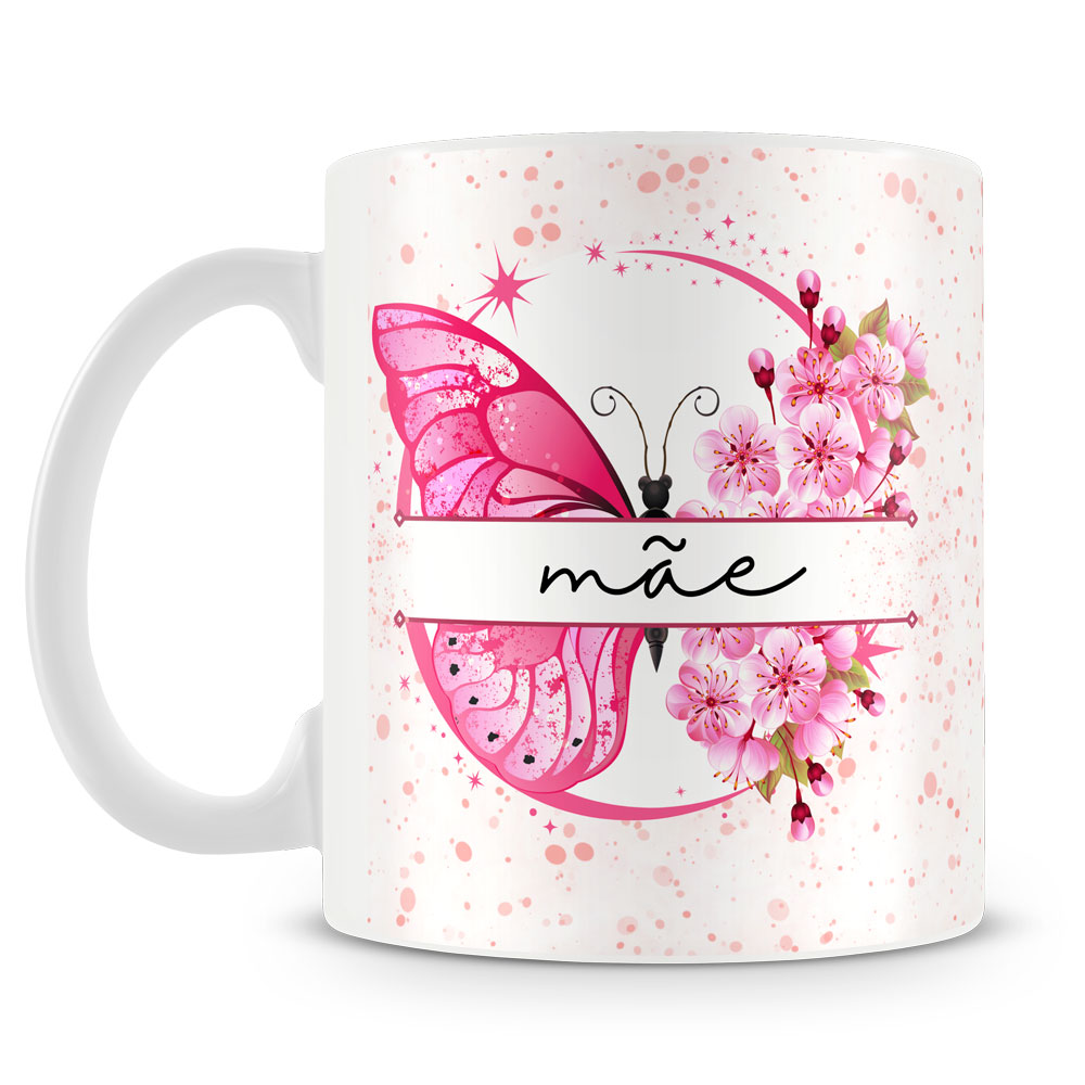 Caneca personalizada de porcelana de alto brilho, interior e alça branca com linda frase para mães.