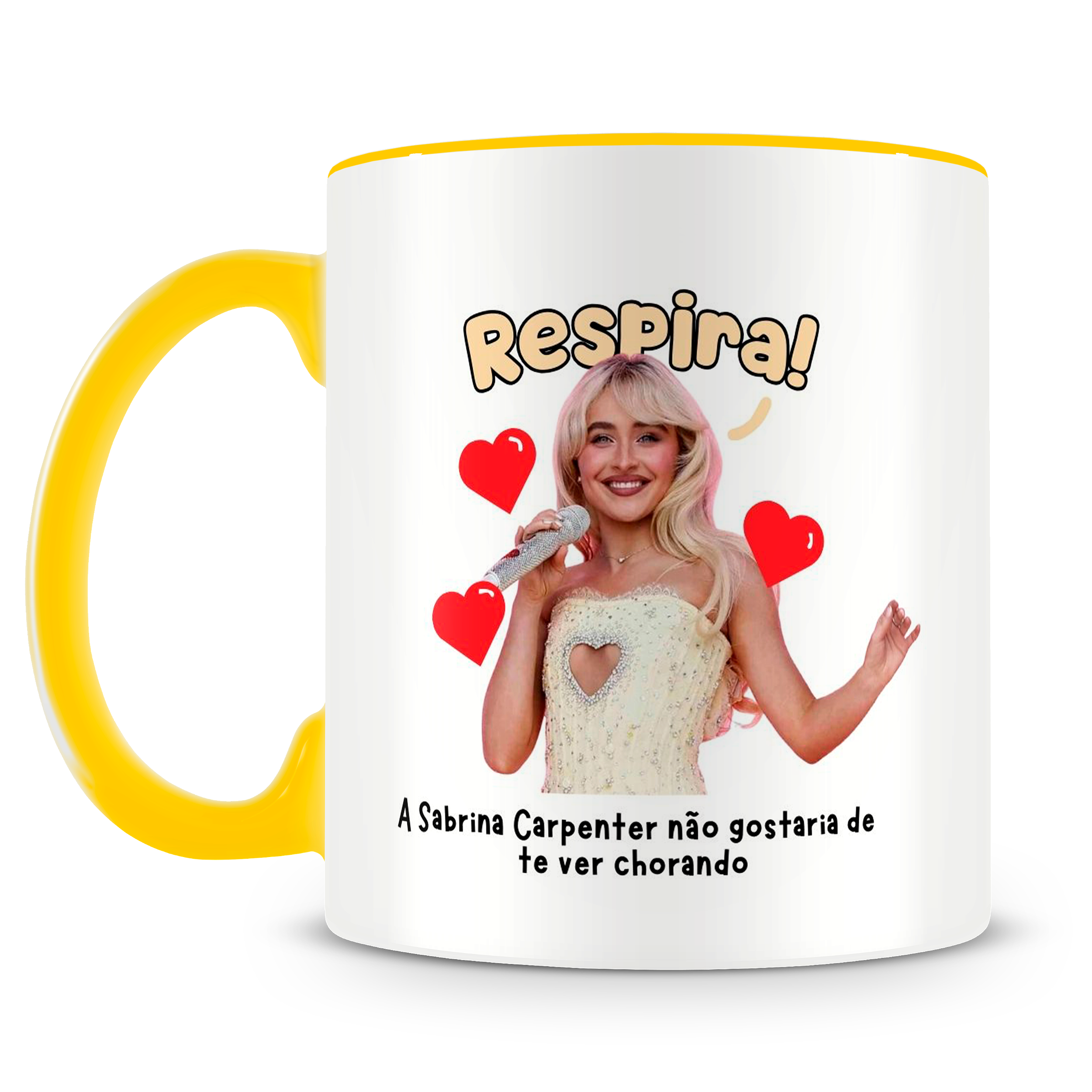 A Caneca Sabrina Carpenter Meme é o presente perfeito para fãs da cantora e atriz que amam cultura pop, humor e muito estilo.