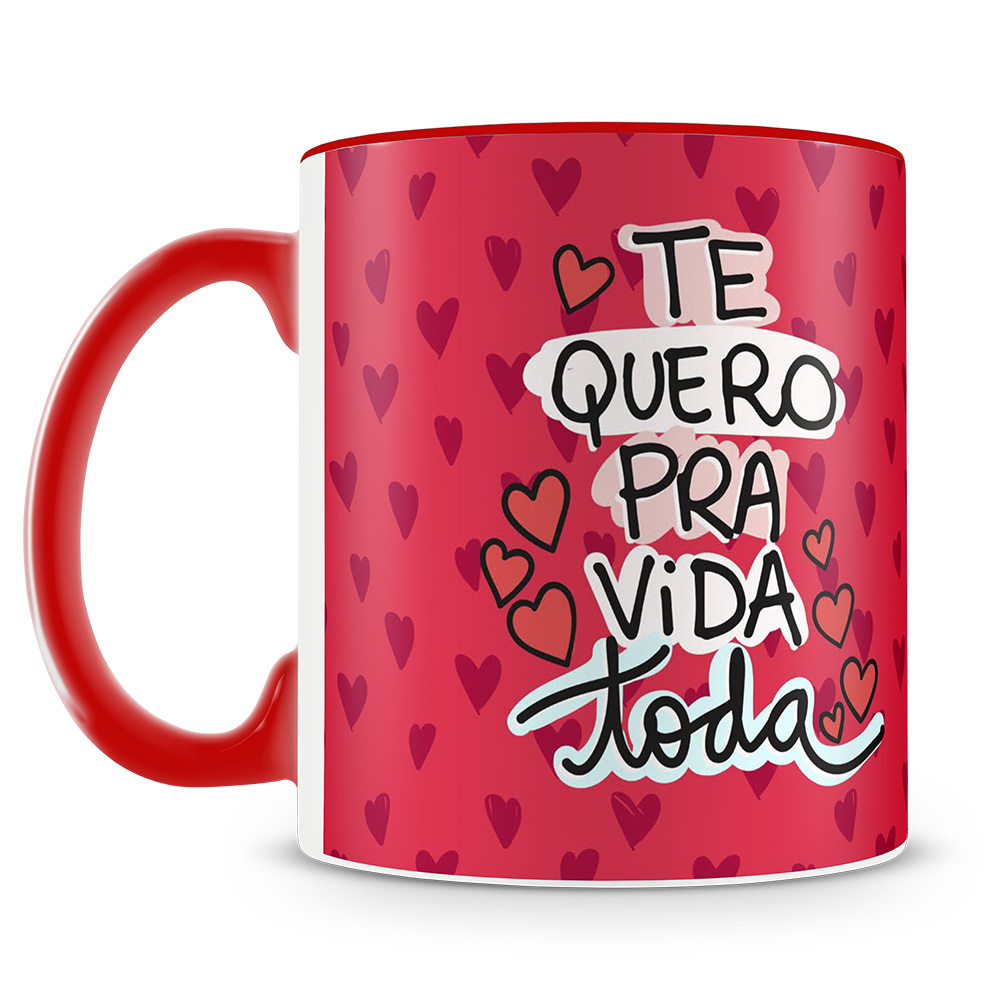 Para declarar um amor eterno de forma simples, mas cheia de significado, a caneca personalizada com a frase "Te Quero pra Vida Toda" é o presente ideal.